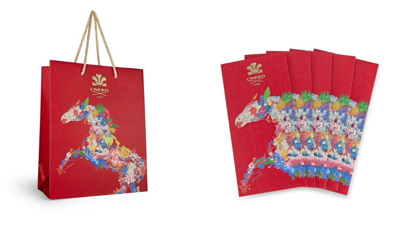Cụ thể, khi khách hàng mua sắm tại bất kỳ cửa hàng nào của Creed sẽ nhận được bao lì xì độc quyền, hộp gói cho chai 50ml&75ml, 100ml và túi giấy. Thiết kế lấy cảm hứng từ tinh thần năm Bính Ngọ và nghệ thuật “Floral Horse”. Những món quà độc quyền của Creed mang ý nghĩa chúc phúc cho một năm mới mạnh mẽ, hanh thông và bứt phá, đúng với tinh thần mà thương hiệu luôn theo đuổi.